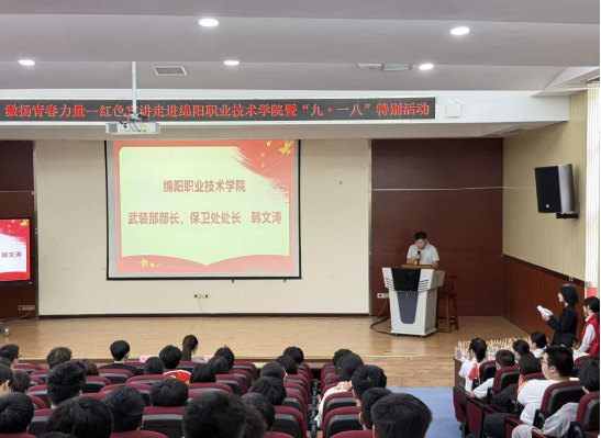 为深入缅怀革命先烈,传承红色基因,进一步激发广大青年学生的爱国情怀与责任担当,9月17日下午,“赓续红色血脉,激扬青春力量”红色宣讲暨“九·一八”特别活动在我校智慧教室成功举办。本次活动由绵阳市烈士纪念设施保护中心与我校联合主办,近两百名师生参与活动。