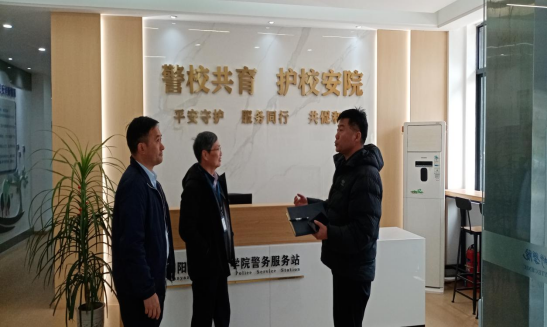 3月18日下午,省安委会校园安全生产专家委员会首席专家隆泗一行2人莅临我校,对校内警务服务站运行情况及安全工作进行专项检查指导。学校安办主任、保卫处处长韩文涛及警务服务站工作人员陪同检查。