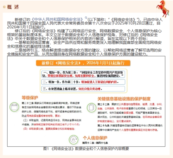 本文从数据安全和个人信息保护的视角对修订后的《网络安全法》进行解读,主要阐述了主要修订内容、网络安全等级保护、关键信息基础设施保护和个人信息保护相关的条款,希望网络运营者、安全产品供应商和服务商都能从中受益,文中如有不当之处,敬请包涵。