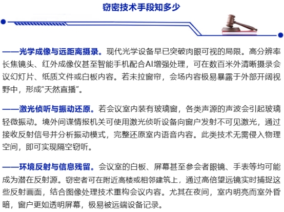 拉上窗帘,这个简单的动作究竟是为了防御什么呢?它防的绝不是无心之人的随意一瞥,而是越来越先进的远程无接触窃密技术手段。今天,小安为大家揭秘几种常见的窃密技术手段与防护方法,希望大家提高警惕,筑牢安全防线。